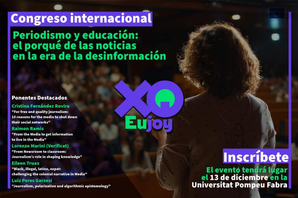 El proyecto europeo XQ.EUJOY: European Youth Journalism. The Why of the News organiza el congreso internacional “Periodismo y educación: el porqué de las noticias en la era de la desinformación”. Ya están abiertas las inscripciones gratuitas para asistir al congreso, que se celebrará el próximo 13 de diciembre en la Universitat Pompeu Fabra. Inscríbete aquí.
